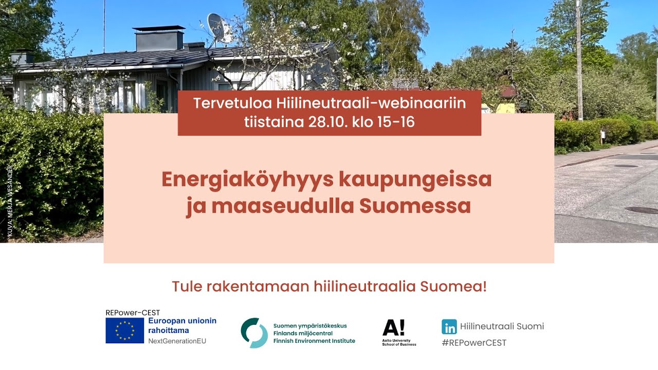 Webinaarissa käsiteltiin EP-Nordic- ja REPower-CEST-hankkeiden alustavia tuloksia Suomen energiaköyhyyden tunnistamiseksi ja mittaamiseksi.